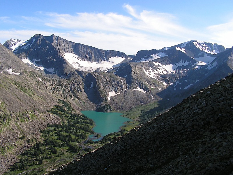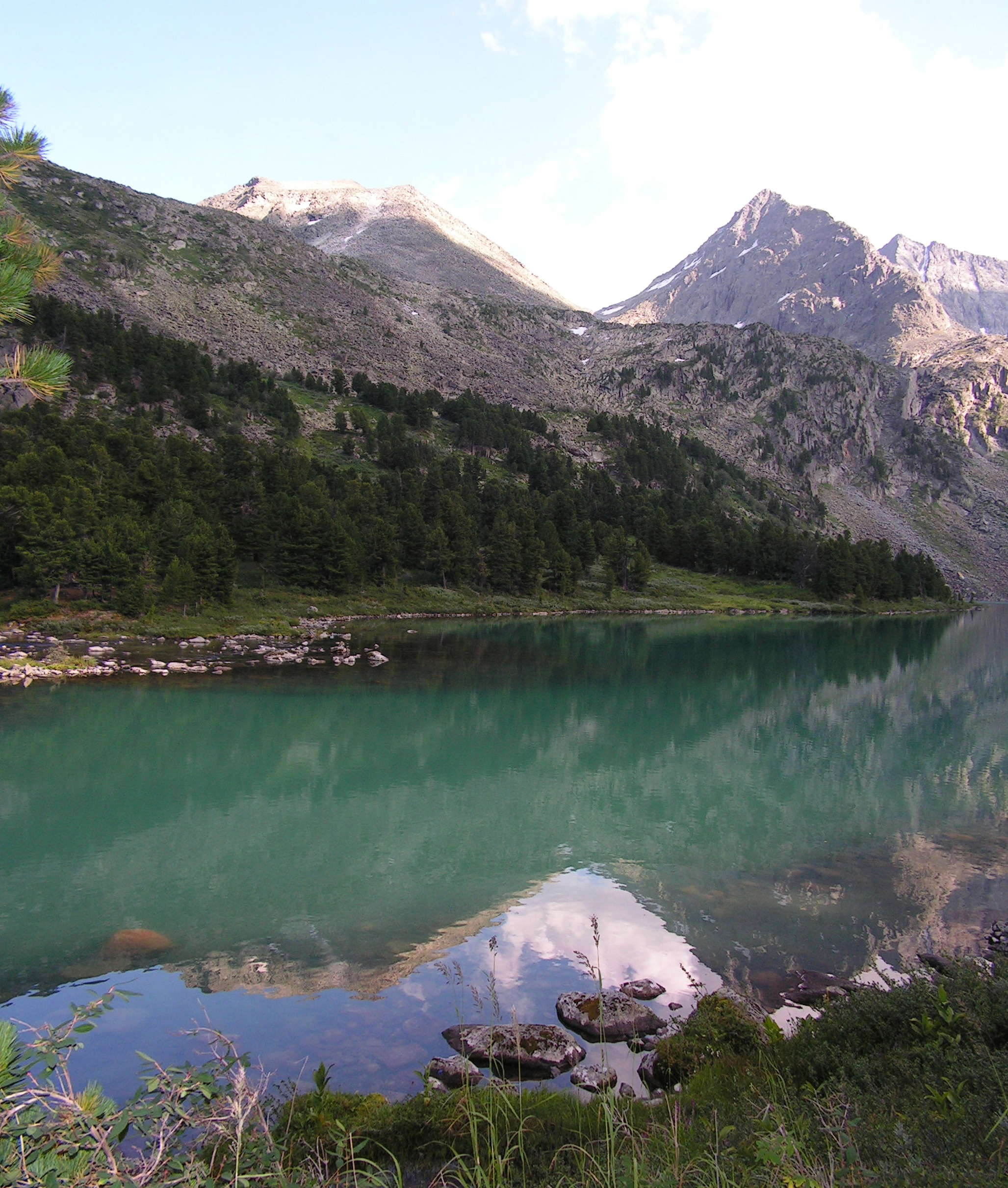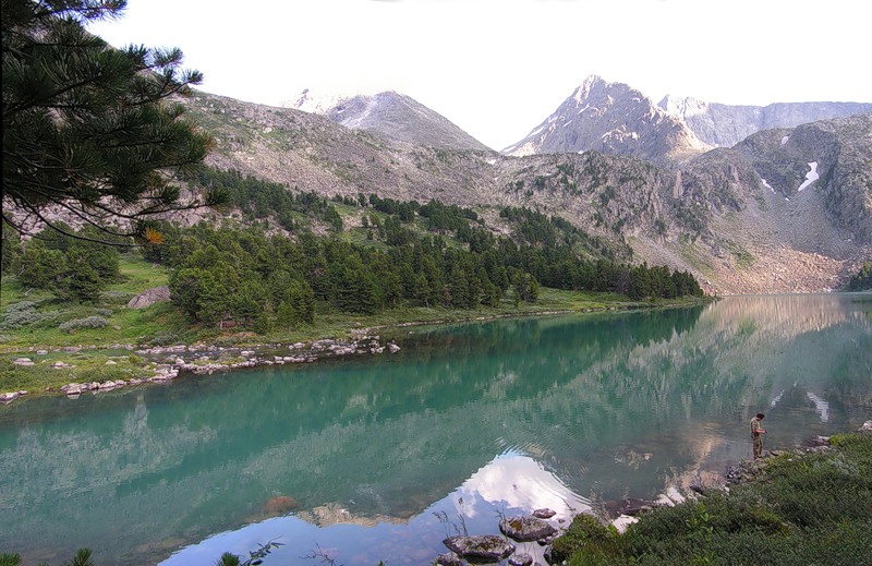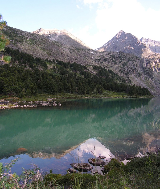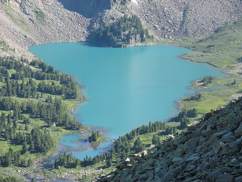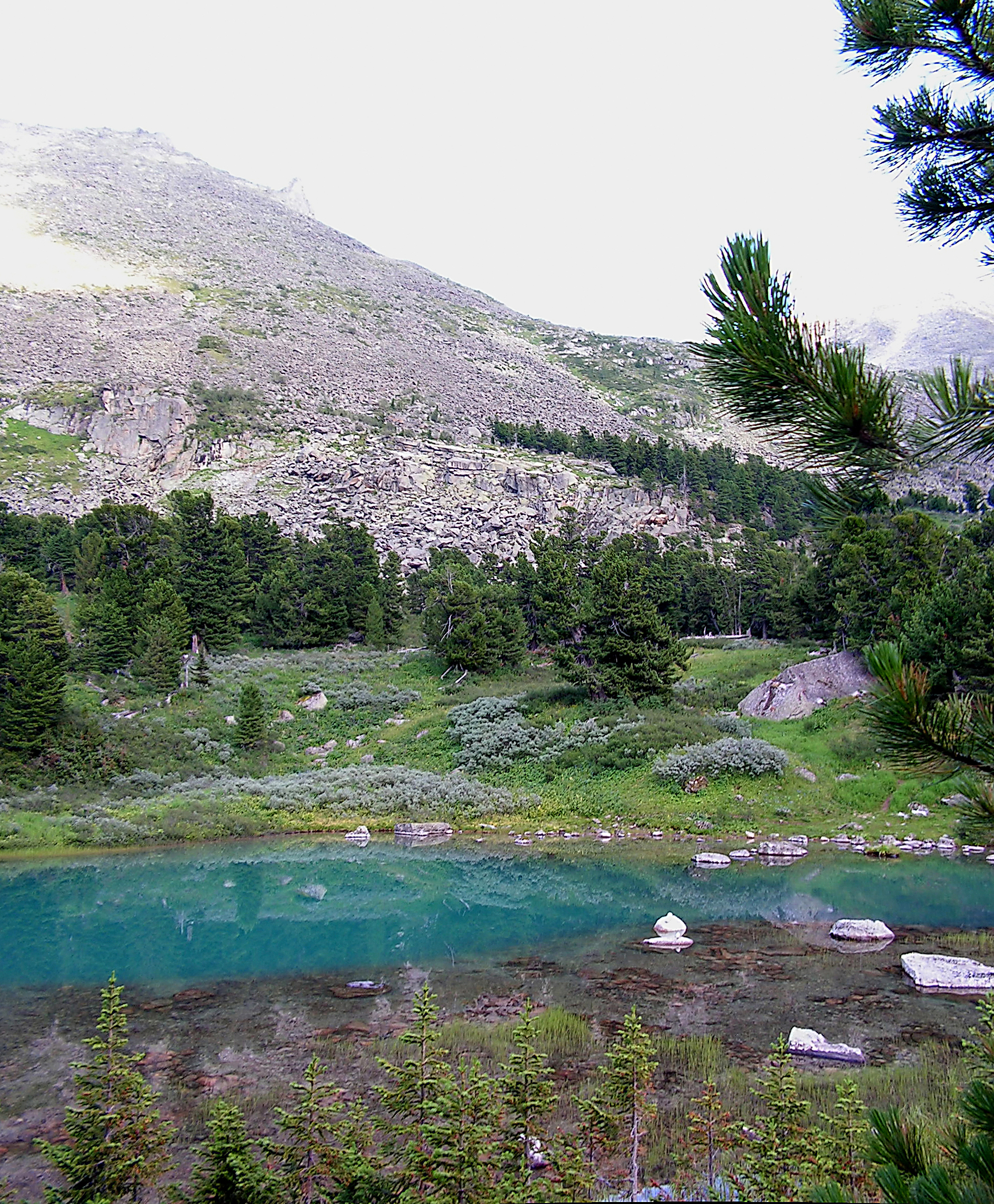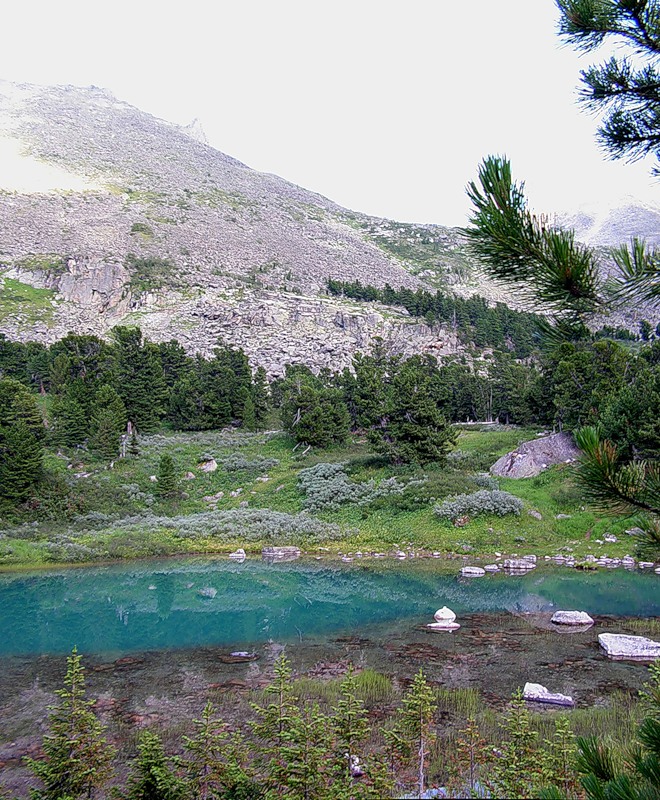 Вот почему у воды такой цвет? Он в этом озере не зависит от наличия или отсутствия солнца. Из химических веществ мы вспомнили только медный купорос с похожим оттенком, но вода на вкус очень даже хороша. Кстати, на Алтае, как и в Хибинах, можно пить воду из любого источника, ничего не опасаясь: