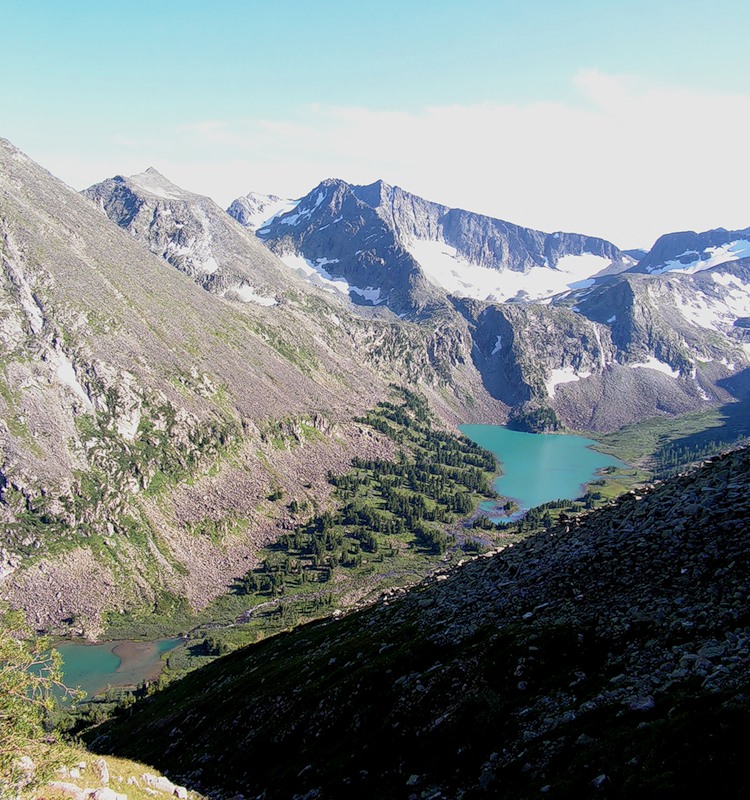 На следующий день нам предстоял переход в другую долину. Перевал был безымянный. Инструктор выбрал его как самый легкий путь для нас: пока мы гуляли по Проездным озерам, он "сбегал" разведать путь.