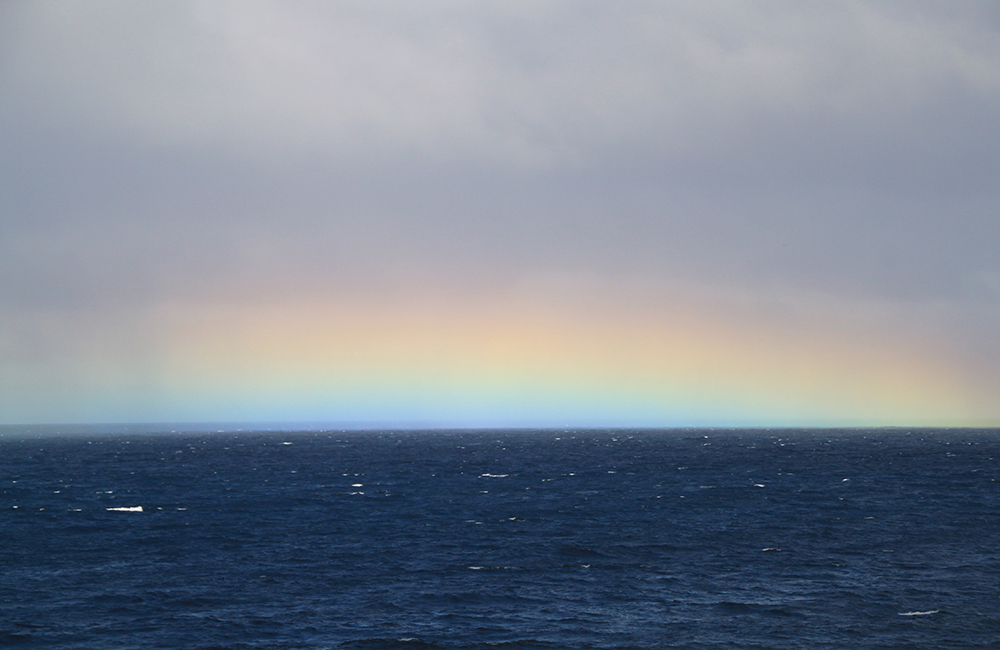 Весь день набегали облака и нас немного брызгало местной дождевой метелью. От нее и радуга.