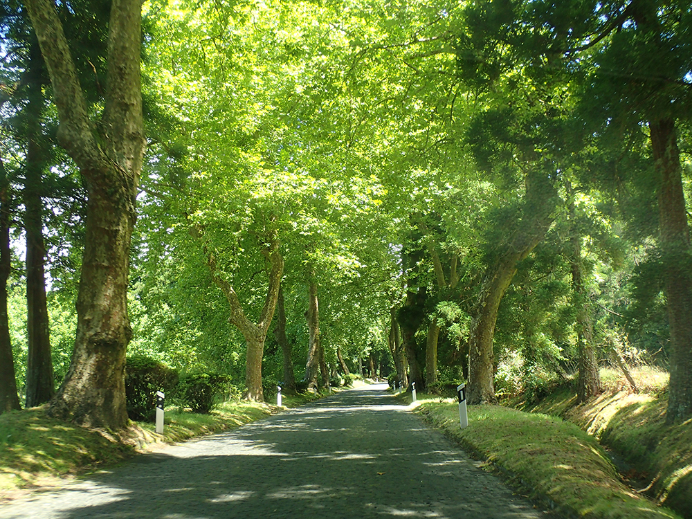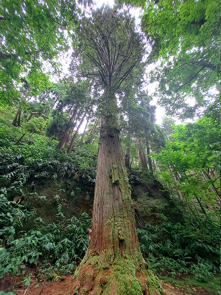 Лес состоит из живописных криптомерий. Вообще-то это такие японские кедры, но на Азорах они хорошо себя чувствуют.