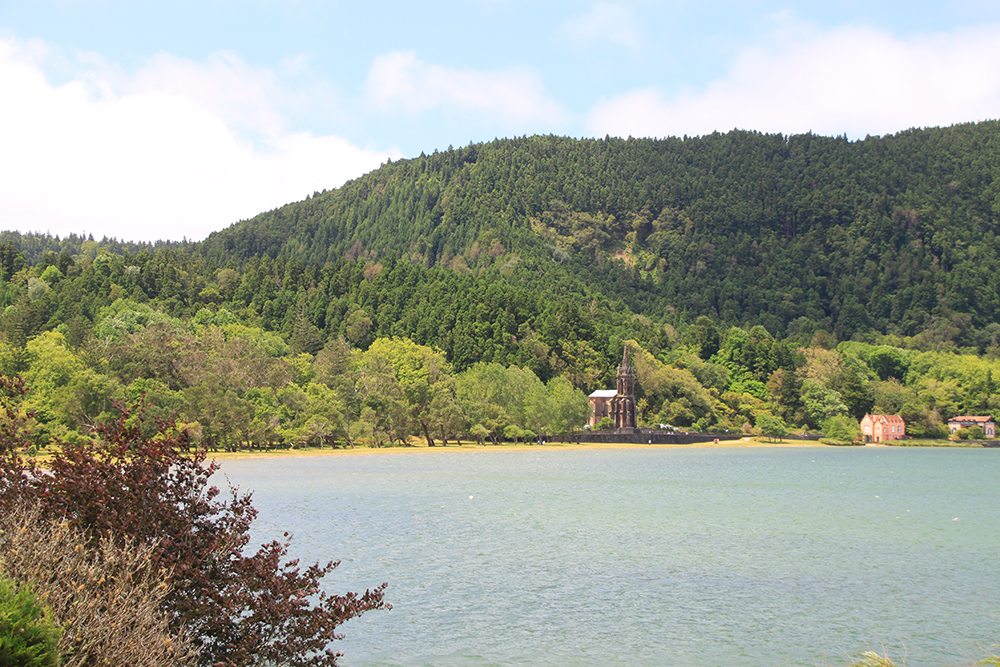 Утро было хорошим и мы было сунулись к кратеру Сете Сидадеш в центре острова. Виды на семь озер — основная фишка Сан-Мигеля, но нам пришлось их ждать несколько дней. А пока там стоял плотный туман, надежды в этот день не оправдались.