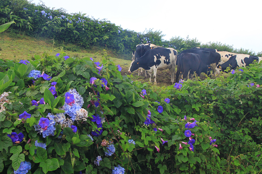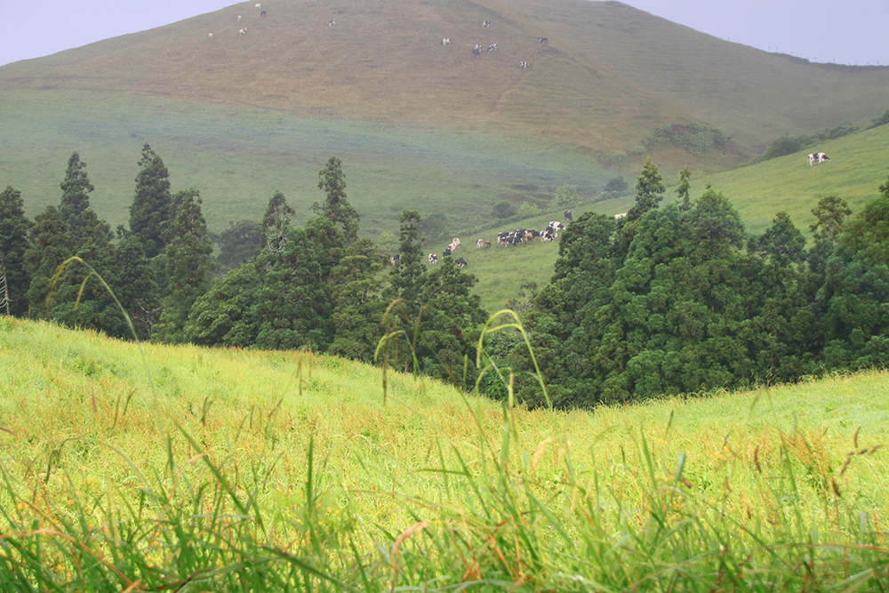Говорят, что азорские коровы — самые счастливые, они круглый год пасутся на лужайке, еды полно. Ну вот дождик иногда поливает...