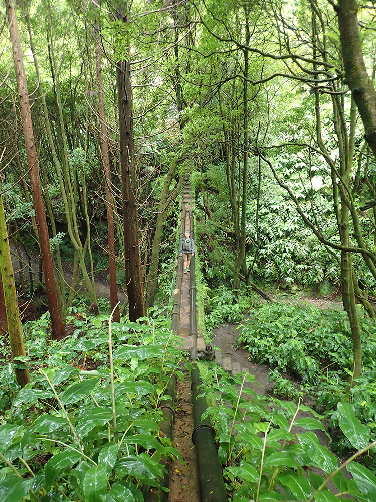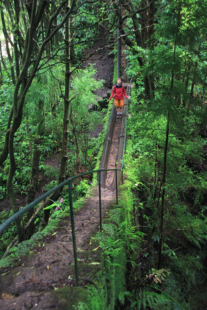 Погода нас не радовала и мы отправились в трек Rota da Água. Как раз в пасмурную мокрую погоду он хорош, с пушистым от мха лесом, живописными деревьями и мостиками.