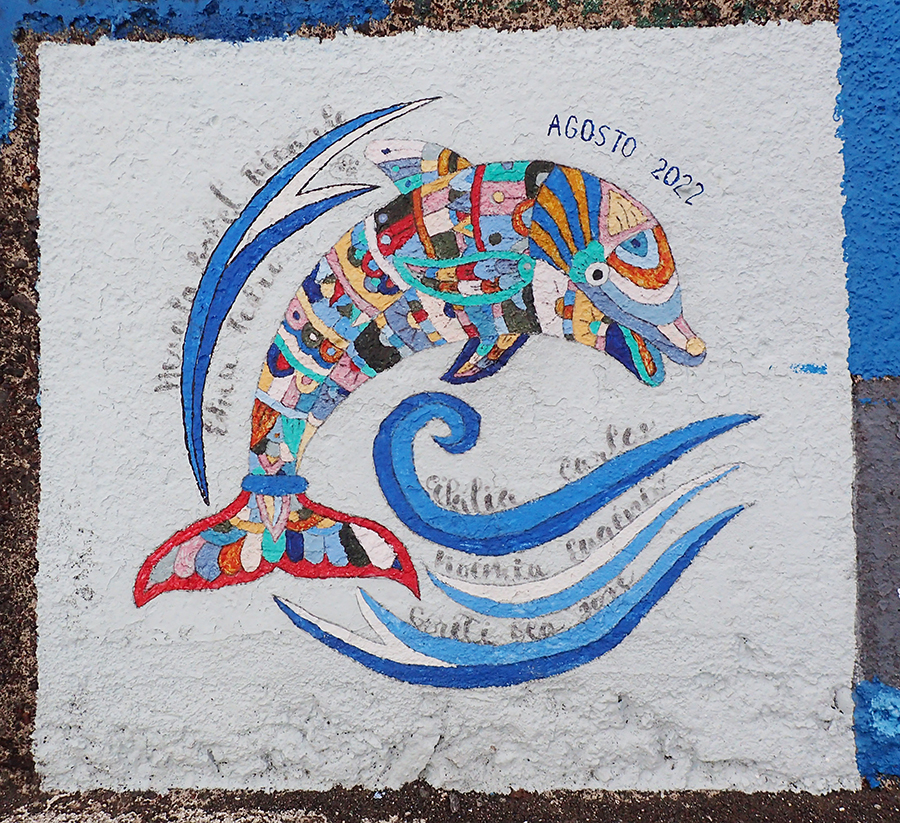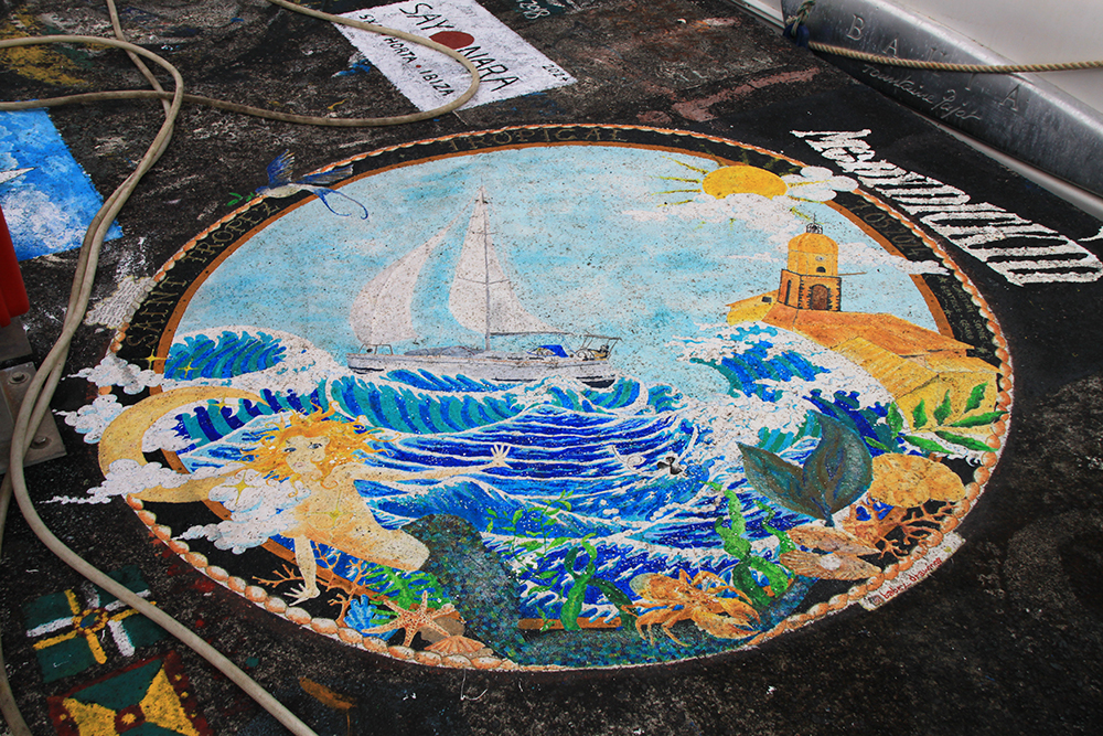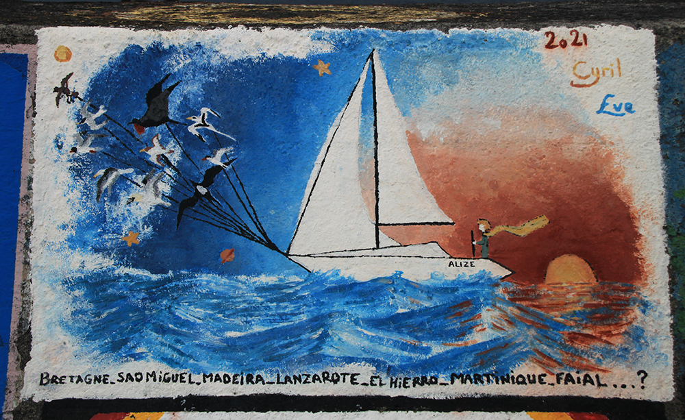 На пирсах и на стенах марины экипажи парусных судов по прибытию в Орту традиционно оставляют рисунки.
