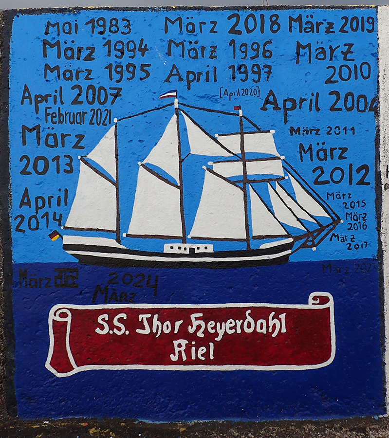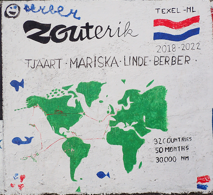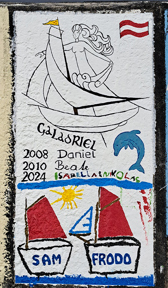 Мы довольно долго ходили и смотрели. Попадаются и совсем простые надписи — название яхты и маршрут, и весьма мастерски нарисованные картины. За каждым рисунком стоит Путешествие.