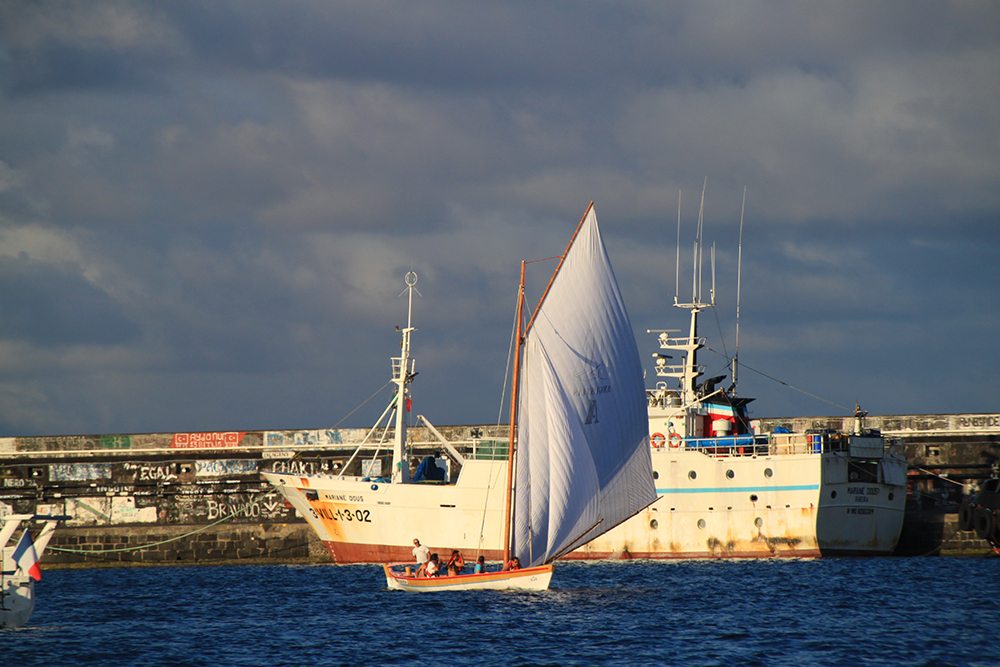 Вечером в марине наблюдали тренировки гребцов. У некоторых были парусно-гребные лодки: против ветра на веслах, а потом под парусом. Вот например.