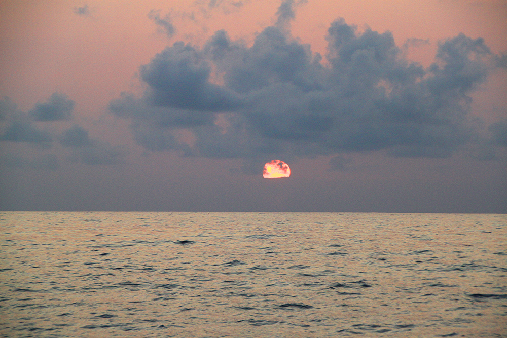 После заката шли еще 5 часов на моторе до якорной стоянки в Ангру.