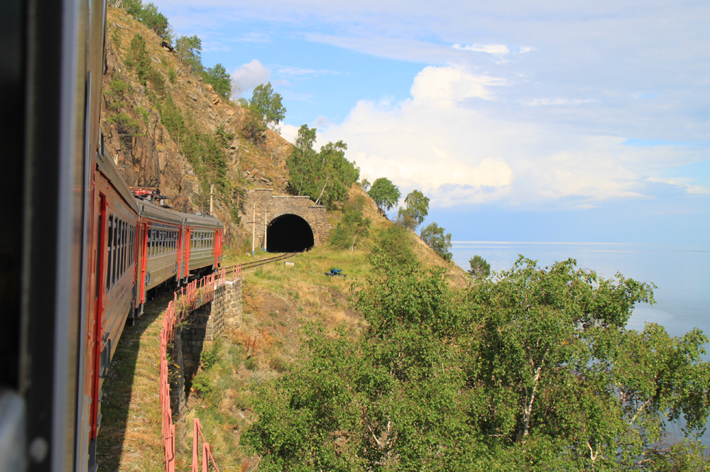Поезд из семи вагонов неспешно едет по Кругобайкалке (быстрее 40 км/ч тут ездить нельзя), часто останавливается и народ выходит погулять. Экскурсовод что-нибудь рассказывает, а потом все возвращаются. В вагоне крутят всякие фильмы про историю дороги и про Байкал.