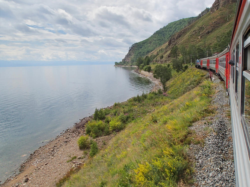 После большой остановки мы нашли наиболее интересное место в поезде, пустой вагон №4. Оказывается, к экскурсионному составу цепляют вагон 3-го класса, то есть просто вагон электрички, но билетов на него экскурсантам не продают. Он вроде как должен быть для местных, но мы там местных не видели. И вот в этом пустом вагоне тихо, много воздуха, нет телевизора, никто не пахнет едой... не орут дети, китайцы не едят свою лапшу... просто праздник какой-то. Всю оставшуюся дорогу до Слюдянки мы стояли там у открытых окон и фотографировали.