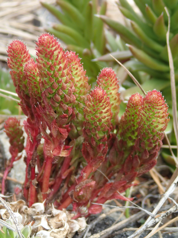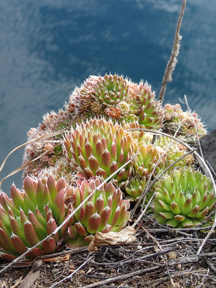 Каменные розы в изобилии растут по берегам и даже цветут смешными метелками.