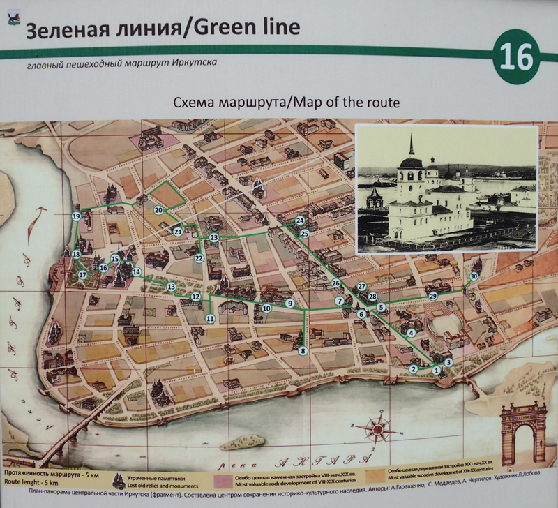 До и после экскурсии мы гуляли по Иркутску. Город мне понравился, летом тут хорошо, и для приезжих в центре всё удобно сделано.