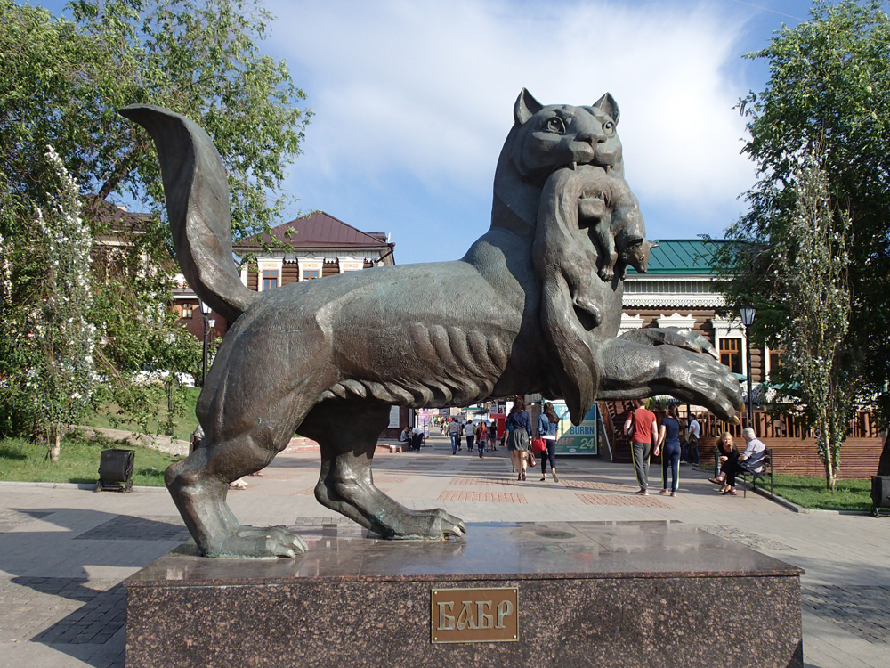 А это герб Иркутска в скульптурном изображении. Бабр держит в зубах соболя.