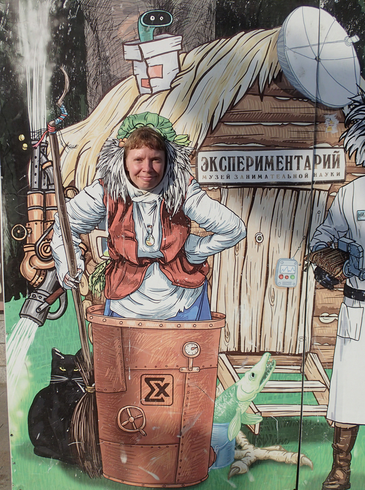 Этот фотостенд стоит возле интерактивного музея всяких физических и оптических явлений. Там, где надо дергать за рычаг, нажимать на кнопки, а тебе за это что-нибудь покажут. Там хорошо, мы случайно туда зашли и не пожалели.