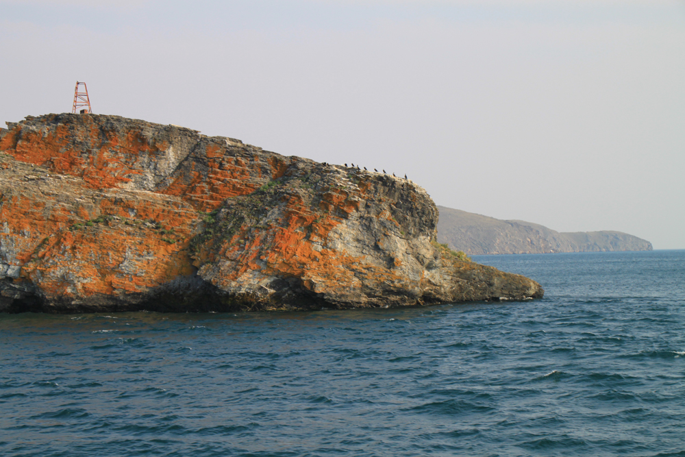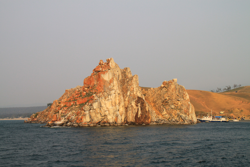Ольхонские скалы. Это самое красивое, что там вообще есть — мраморные скалы с красными лишайниками. И нам повезло подойти к острову на закате.