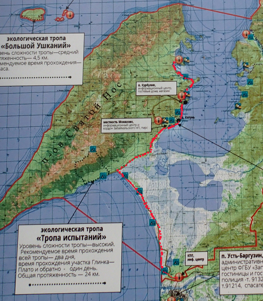 Вот карта Забайкальского нацпарка, красным обозначен наш маршрут (сверху вниз).