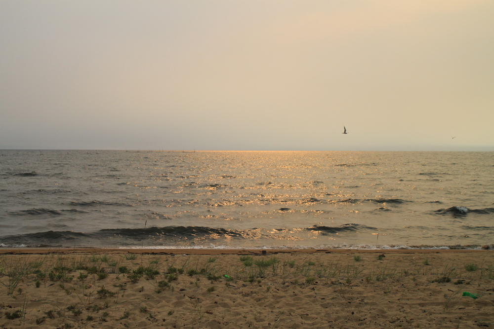 Когда вечером пришли в Монахово, то поняли — мы тут не останемся. Пляж напоминал мне автокемпинг в Крыму 80-х годов прошлого века, машины впритирку и люди друг у друга на головах. В ужасе мы глотнули кваса, купленного в местном магазине-вагончике и застопили буханку: ближайшая палаточная стоянка была от Монахово в 10 километрах по пыльной оживленной дороге, идти пешком по ней очень не хотелось. Поэтому ночевали мы уже к югу от перешейка, местечко называется Глинка.