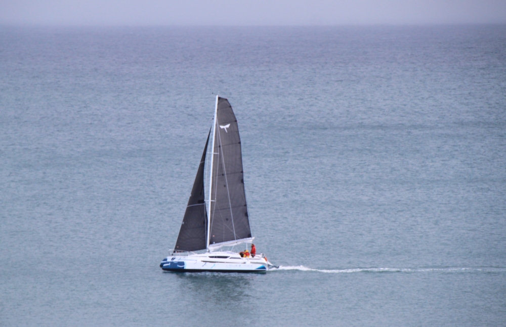 Когда шли обратно, мимо нас проплыл тримаран.