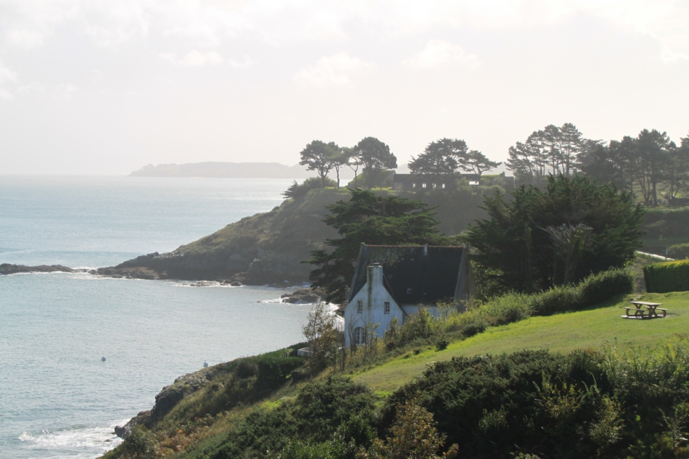 Типичный бретонский домик — белый с серой крышей.