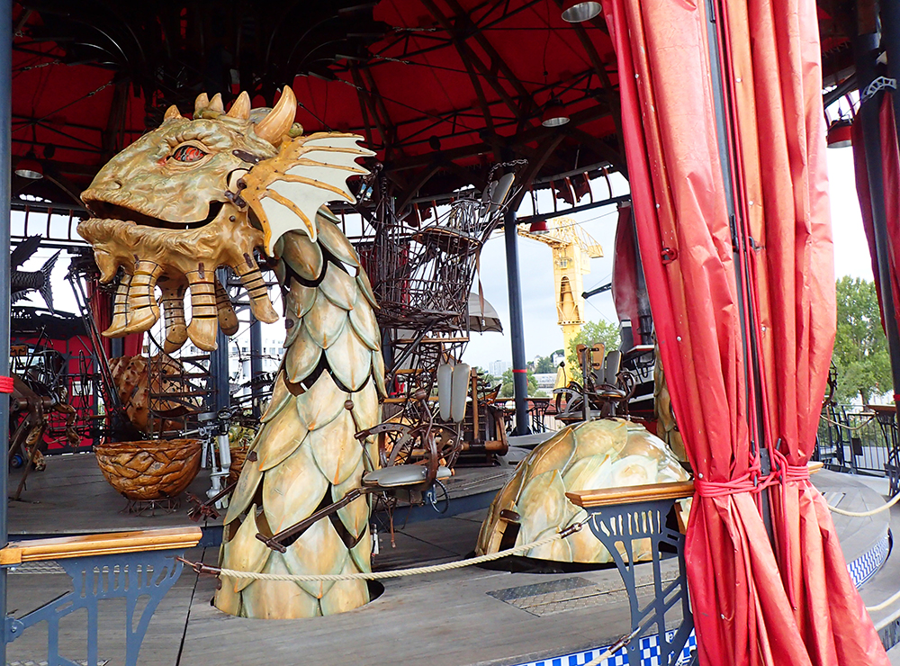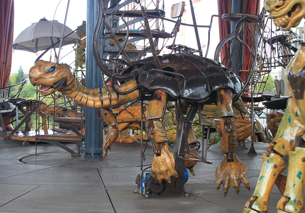 На острове посреди Луары помимо слона есть галерея с механическими зверями и карусель.