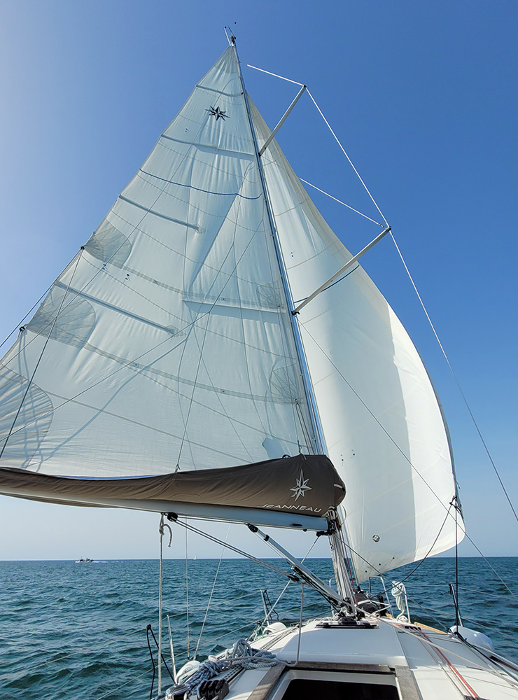 Наша яхта называлась «Луанна», Сан Одиссей 349. Вроде как она была 2020 года. Однако относительная ее новизна встречалась неоднозначной ухмылкой всеми, а особенно капитаном. Потому что яхты недавней постройки гораздо более хрупкие и кажется, что у них вот-вот что-то по мелочи оторвется, замки, петли, ручки всякие. И эргономика прихрамывает. Но в целом ничего критичного не сломалось.