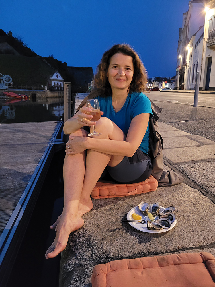 К двум часам дня ветер стих. Мы купались, обедали и даже ужинали в море. Потому что ждали прилива. В Лё Пале надо было заходить не раньше 19:00, пришлось даже немного подождать перед шлюзом.
