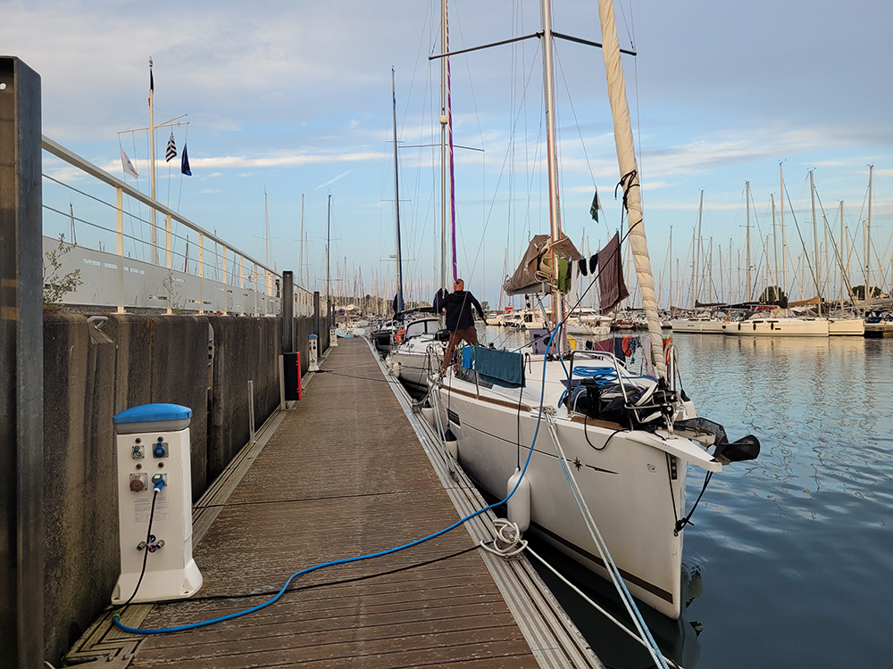 Наша яхта пришвартована лагом. Набираем пресную воду.