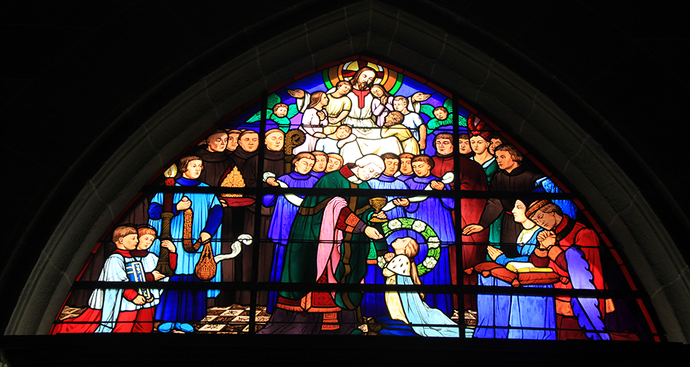 В собор можно свободно зайти. Витражи.