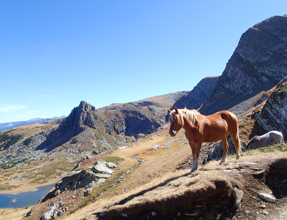 На спуске нам позировал конь: