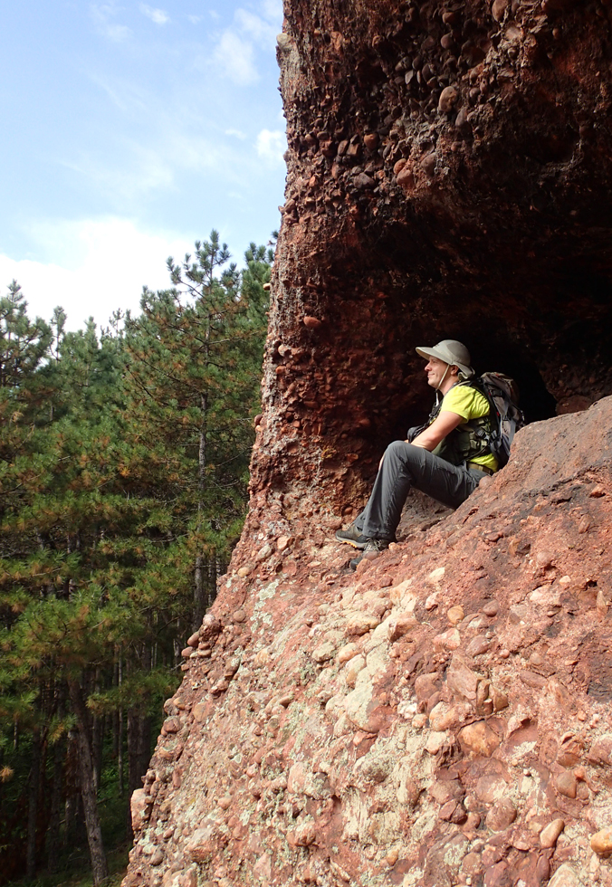 Уйдя от обсерватории вглубь массива, мы быстро осознали элемент своего слабоумия и отваги. В прошлом году мы купили в Белоградчике карту треккинговых маршрутов. Многие маршруты, обозначенные на ней, заросли, однако она давала общее представление. Карту дома найти не удалось. Мы надеялись купить ее еще раз на месте, но в Белоградчике она уже не продается. gps барахлит — старые треки в нем есть в виде файлов, но показывать он их не хочет. После некоторых раздумий Ран познакомил свой телефон с gps-ом, как-то перелил файл в телефон и у нас появился хотя бы старый маршрут. Уже что-то.