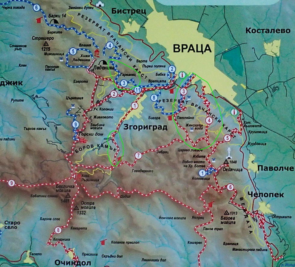 Если о маршрутах в Белоградчике у нас имелось хоть какое-то представление, то горы Врачанского Балкана мы исследовали впервые. У нас была общая карта местности, а также мы попытались извлечь что-то полезное из сайта http://vr-balkan.net/. Но реально это очень мало, информации не хватало.