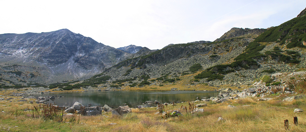 Из Самокова мы доехали 10 км до Боровца, но оказалось, что подъемник Боровец-Ястръбец внезапно закрыт (не работает с 14 сентября, летом он работал). Итак, вместо 600 вертикальных метров нам пришлось идти 1600, а это вверх-вниз за один день достаточно много. И 24 км в оба конца. Так что у меня получился спортивный день рождения :-)