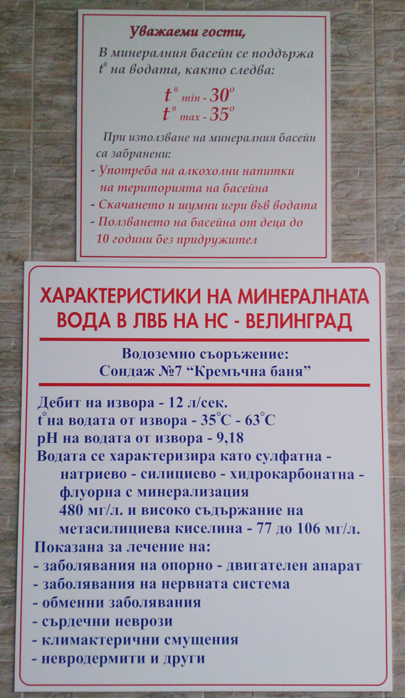 В этот раз я вычитала про Лечебно-восстановительную базу с теплым минеральным бассейном, и мы ее нашли. Адрес — бульвар Вела Пеева, 35. Посещение бассейна стоит 7 левов с человека, все очень новое и чистое, вода примерно +35 градусов, бассейн закрытый. Кроме нас, в нем не было ни-ко-го.