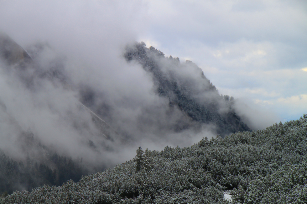 Внизу циклон вылился в виде дождя, а наверху лег хороший слой снега.
