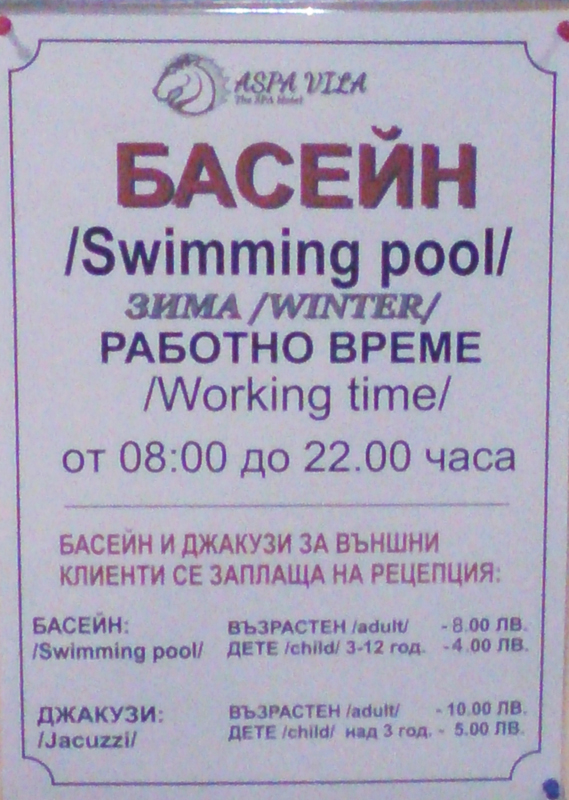 Минеральный бассейн в отеле Аспа Вила не единственный, у соседей просто был меньше. Тут вода где-то +35–+36, раздевалки не самые удобные, зато в спа-отделении отеля имеется неплохая сауна. Она либо работает по запросу других посетителей, либо можно попросить ее включить за 7 левов (на всех желающих, время не ограничено). Джакузи не работал(о).