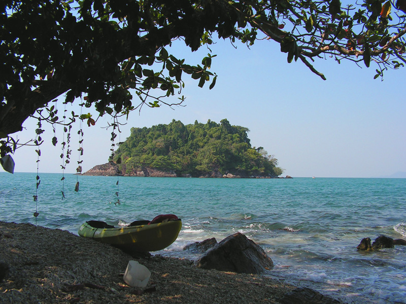 Совершенно необитаемый остров Пли, к которому припаркована моя каравелла. Вид на остров Юак.