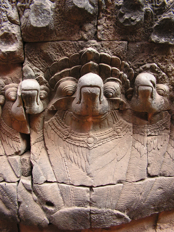 А вот тут рядом с воротами Ангкор Тома я попыталась заснять две команды. Получилось частично - фрагменты змеев и команд не сохранились.