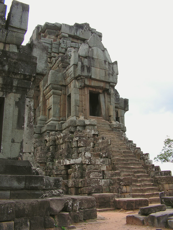 Пусть он не такой большой и пафосный, как Ангкор Ват, но по ощущению гораздо душевнее. И лазить, опять же, можно во все стороны. Там человечек маленький наверху лезет. А лестницы крутые: