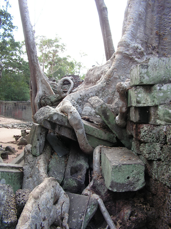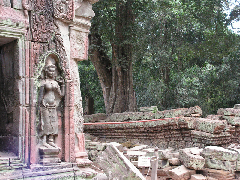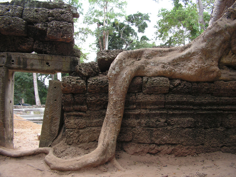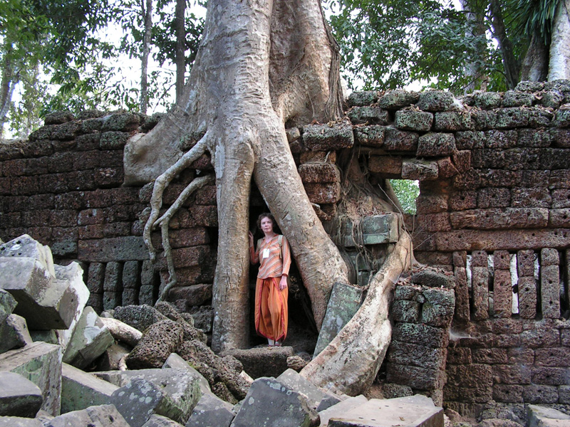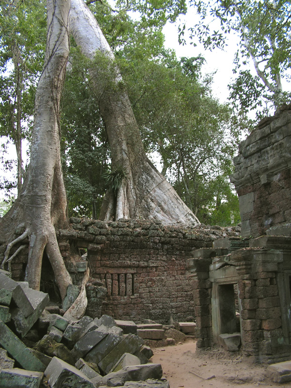 Этот храм не стали очищать от деревьев. А поскольку он не был сильно разрушен, то такое тесное переплетение природы и архитектуры смотрится потрясающе. Храм очень известен и попадает в малый туристический круг, маршрут, который можно успеть за день. Поэтому народ там есть. Сколько еще лет храм продержится, непонятно: здания взламываются корнями, а деревья, выросшие в камне, сохнут. Поэтому камбоджийцы совместно с индусами будут его реставрировать и это означает - смотреть надо быстро, пока не спилили половину красоты.