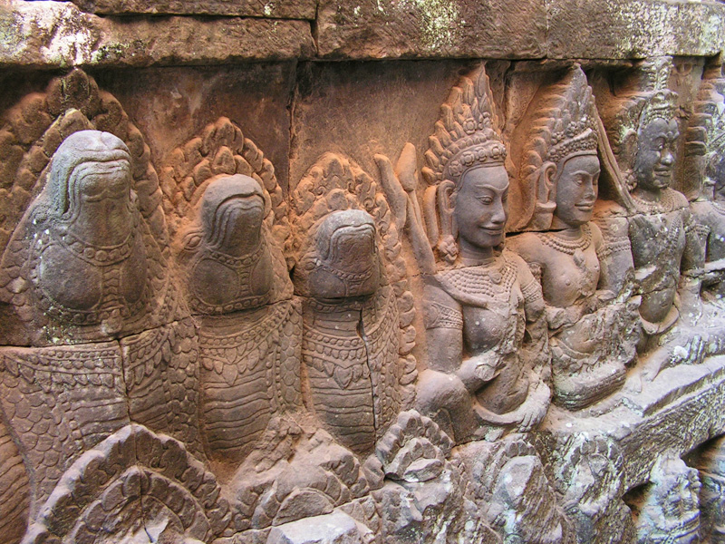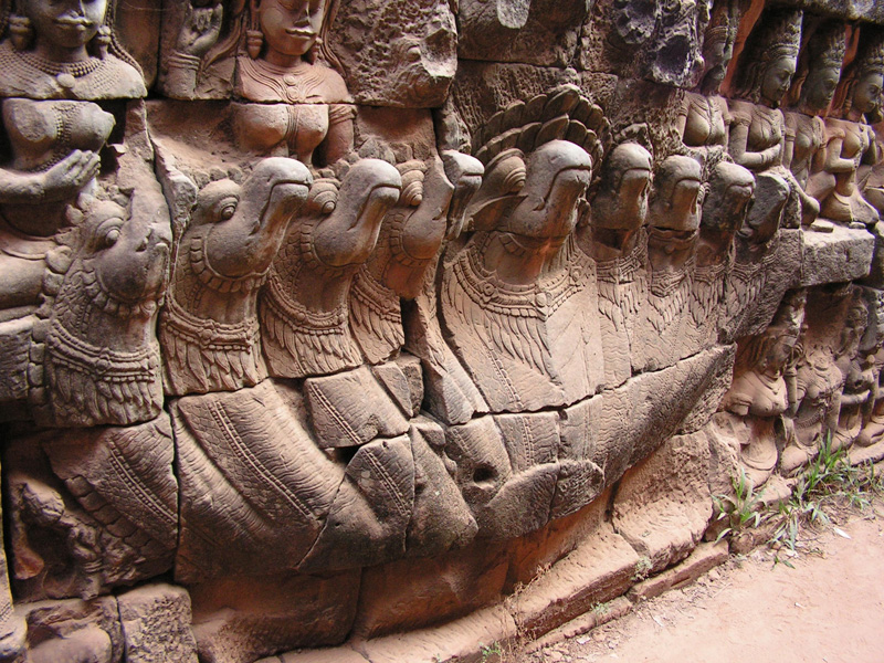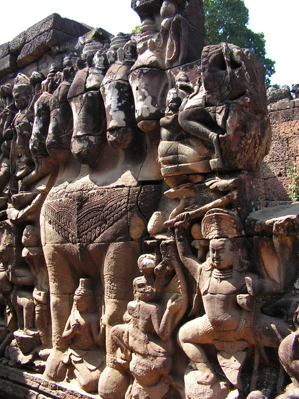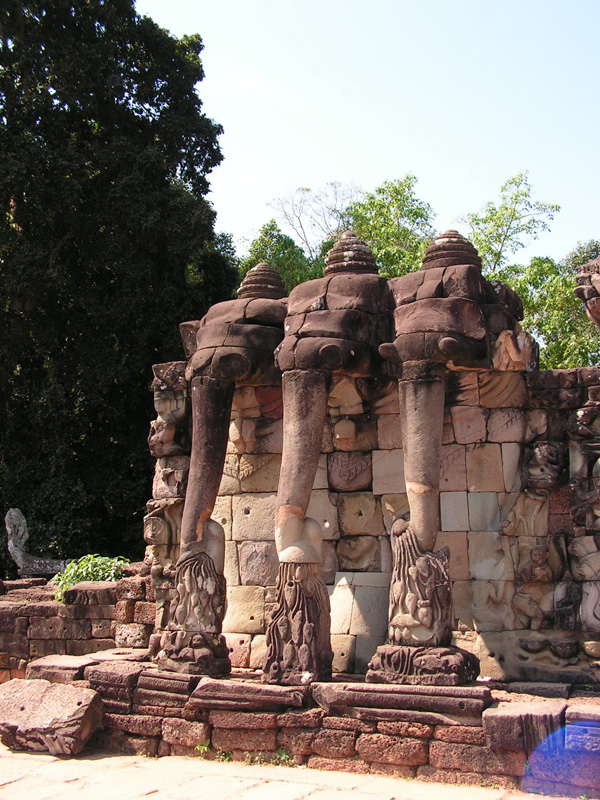 Терраса слонов. Слоны держат в хоботах лотосы.