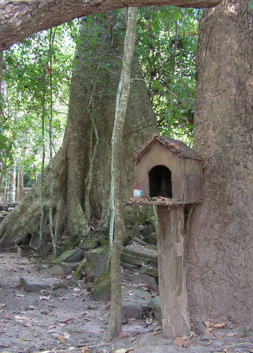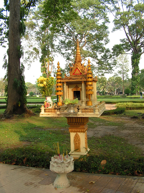 Мне это традиция кажется трогательной и очень правильной. Наверняка в домах люди спокойно спят и не пропадают вещи. Таких чисто европейских проблем, как полтергейсты, барабашки и обиженные домовые здесь быть не может: тайские и кхмерские духи сыты, довольны и имеют жилплощадь. :-)))