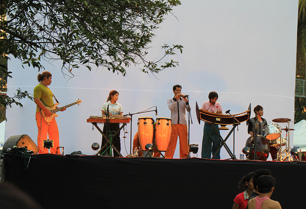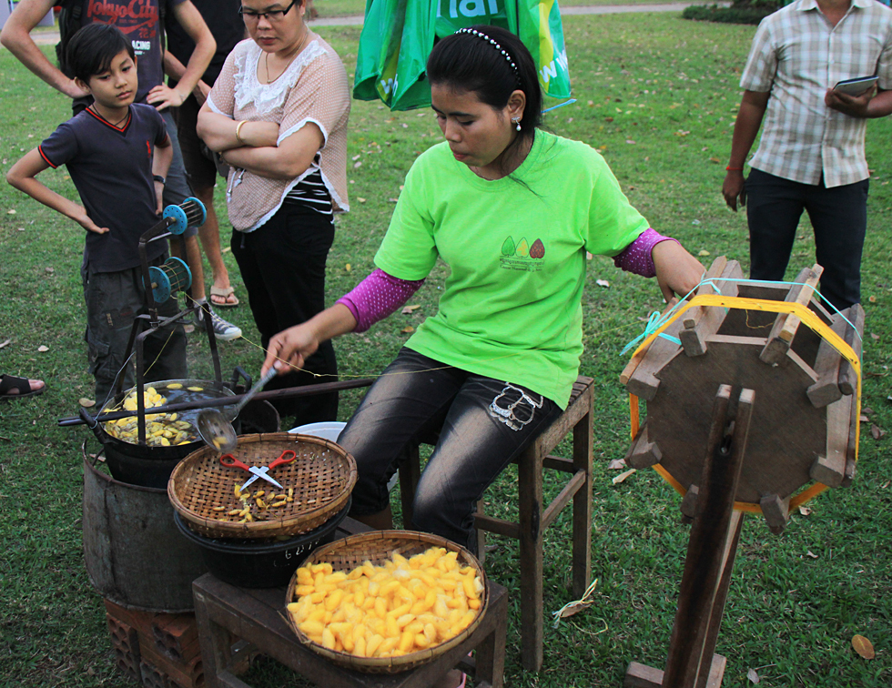 Основные товары на ярмарке — всякие поделки из ткани и дерева, местный шелк, пряности, варенье, местная косметика. Мы себе купили кампотского перца, отменный черный перец, очень душистый. Здесь его в блюда добавляют еще зеленым, прямо гроздьями. Особенно хорош с морепродуктами.