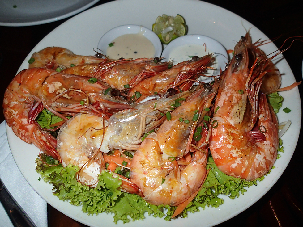 А эта тарелка с огромными креветками-гриль — 8$