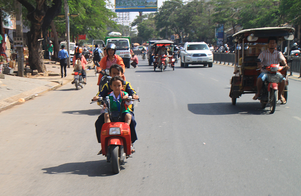 Извините за качество фотографии, но нас поразил сам факт. Это большое, весьма загруженное взрослое шоссе. А у детей есть свой личный транспорт и они едут как большие. Думаю, что европейские дети обзавидуются, если им показать эту картинку.