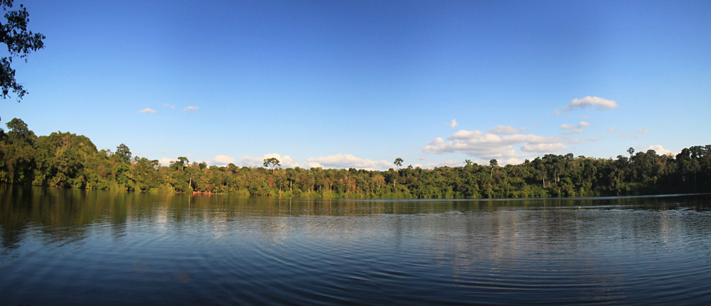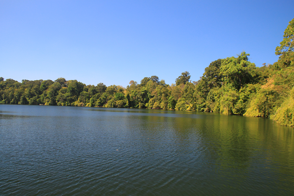 Йик Лом — это круглое пресное озеро в кратере потухшего вулкана, окруженное лесом.