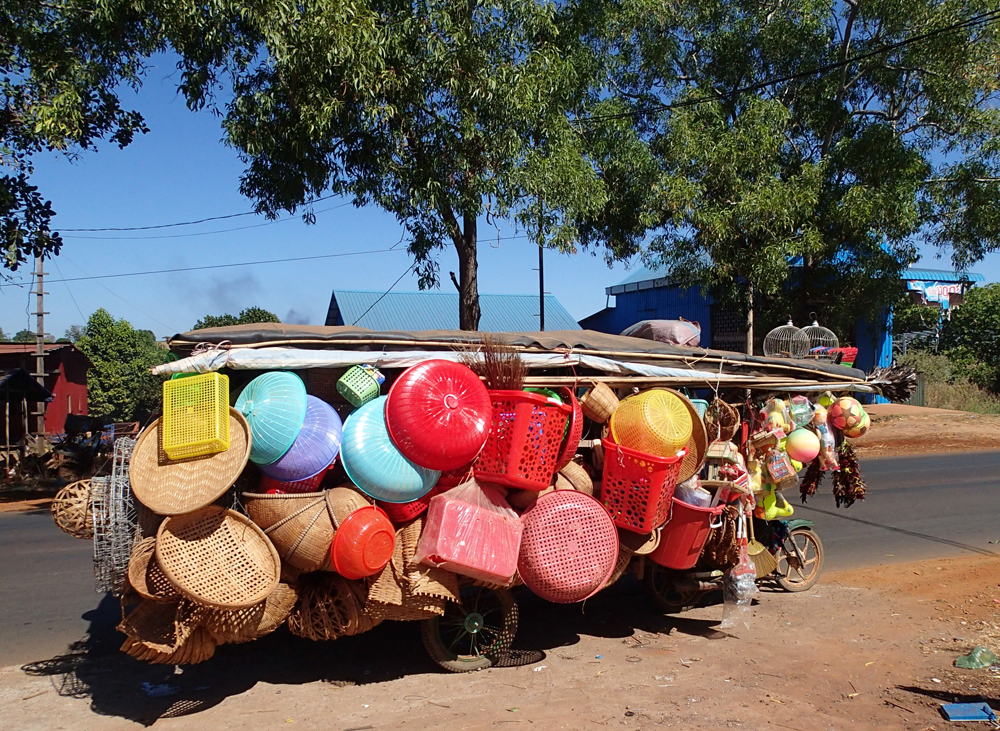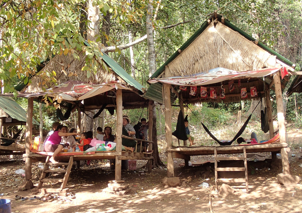 Сперва о дороге в Банлунг, поскольку информации о ней не густо. Мы ехали из лаосского Сипандона, и турагентство на Дон Дете обещало нам 8 часов дороги и прямой автобус от кхмерской границы (24$ с человека). Мы кролики опытные, и готовы были спорить, что эти 250 км мы преодолеем в лучшем случае за 10 часов, и по кхмерской стороне будем двигаться на перекладных (в Стынг Тренге транспорт поменяют). Спор выиграли. Так долго ехать приходится из-за постоянной смены транспорта и ожидания в промежутках: лодка с острова, полтора часа заполнения таможенных деклараций, автобус до границы. Там у группы собрали паспорта, что было неприятно, но зато группе не пришлось бегать и стоять в приграничных очередях. Мы визу сделали заранее, а остальные, конечно, нет. Далее группа 2.5 часа сидела на камбоджийской стороне в кафешке из г... полиэтилена и палок. В туалет можно было сходить за полбакса через дорогу, а можно было в лес. До Стынг Тренга ехали меньше часа, дорога очень пустынна и разбита. Трафик нулевой, поэтому доехать от границы можно только с группой, или надо где-то добывать такси. На погранпереходе они вас не ждут. В Стынг Тренге часа полтора ждали пересадку в следующей кафешке. На последнем плече нас посадили на раздолбанную грязную маршрутку с местными жителями, которая в городе останавливалась у каждого столба... а потом втопила 90 км/ч и за пару часов по хорошей дороге доехала до Банлунга. Все равно приехали затемно. В этой части света подобные долгие и тяжелые переезды по земле — единственное средство куда-то добраться.