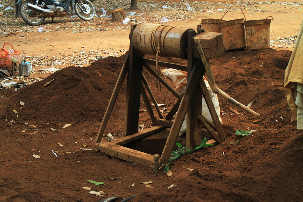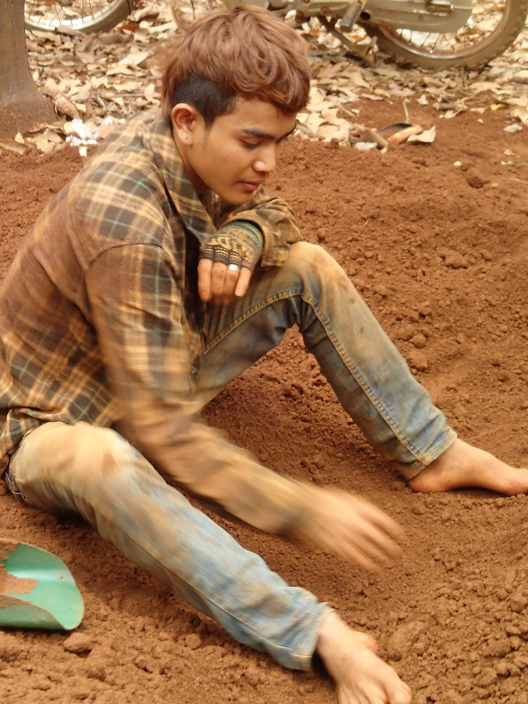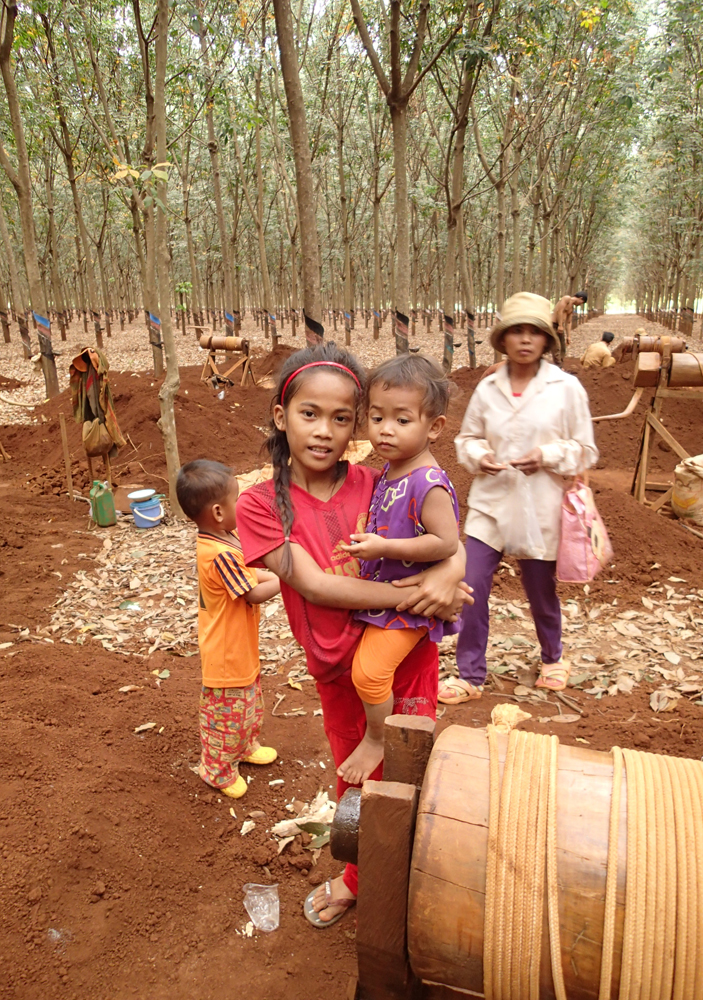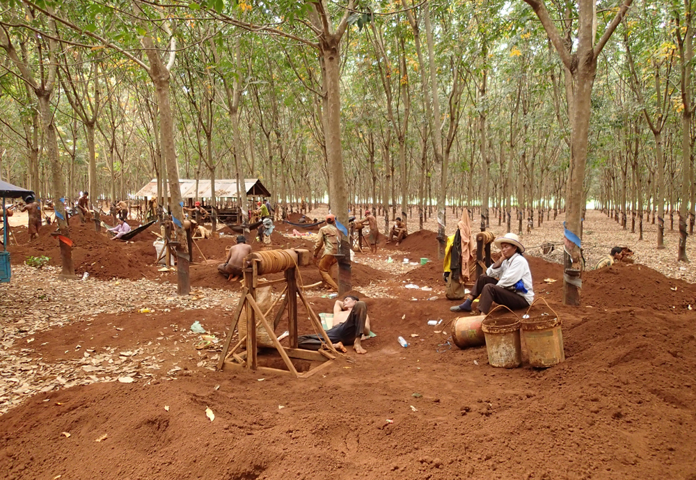 А дальше мы поехали на шахты драгоценных камней, это как раз в сторону Йик Лом и километров 25–30 дальше. Шахты переезжают с места на место, нас привезли прямо на каучуковую плантацию, где скважины копают прямо между деревьев. Место колоритное.
