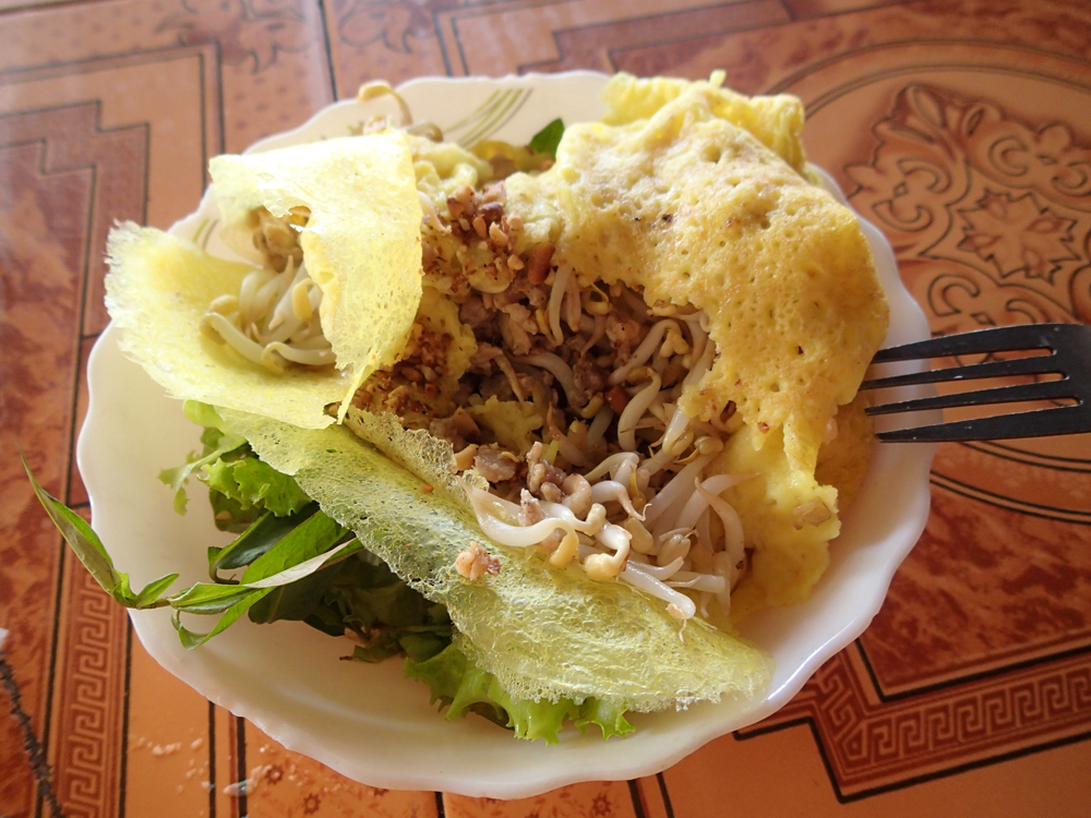 Из Банлунга мы выбирались в Пномпень: ехали 8 часов на относительно новом минивене, забитом местными жителями под завязку: в ногах лежали мешки с джекфрутами, плескался «холодильник» из пенопласта (может, с рыбкой), а в другом ящике явно попискивали цыплята. Ехали очень быстро. Когда есть асфальт, кхмеры опасно водят: нажимают гуделку и летят вперед по встречке с двойными обгонами. По дороге нас два раза высаживали поесть. Ран по результатам отравления постился, а я исследовала настоящую местную кухню, не рассчитанную на туристов: на первой остановке попался очень вкусный кислый суп из курицы и какой-то травки (может, цветок банана), а на второй — отличный яичный блинчик banh chav с ростками сои и мясом, за доллар.