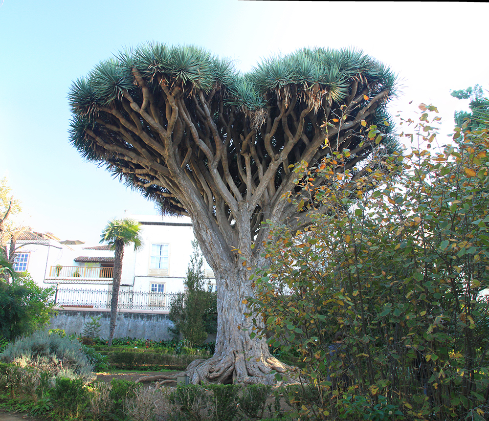 А это небольшой ботанический сад Оротавы. Тут растет внушительное драконовое дерево.