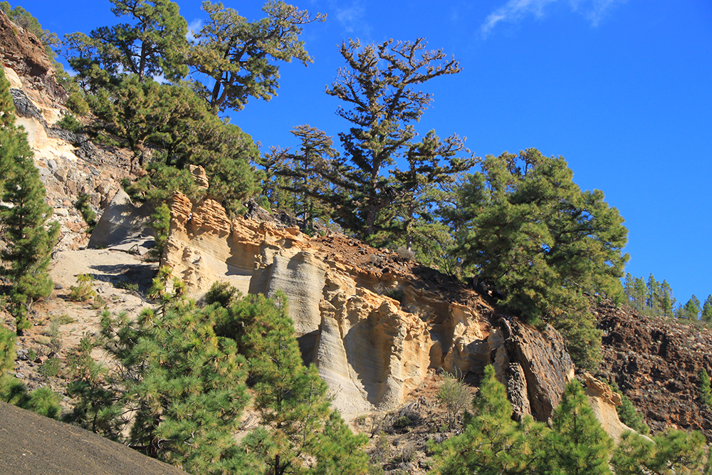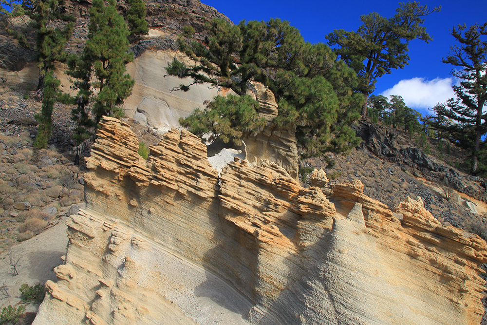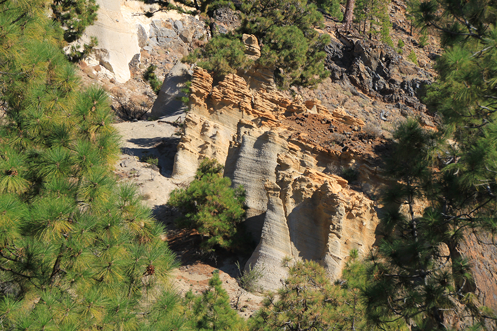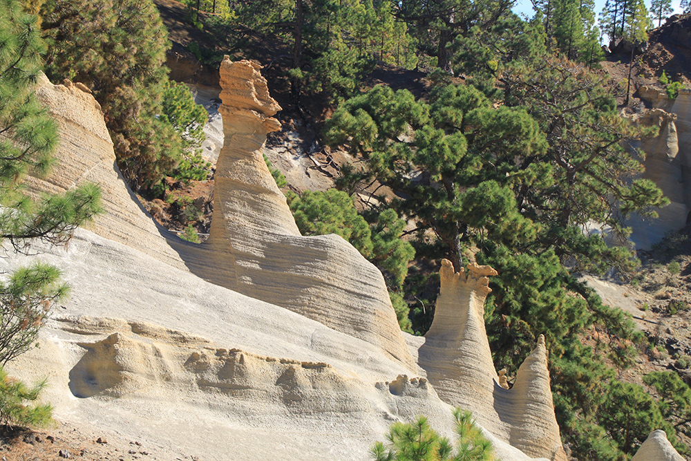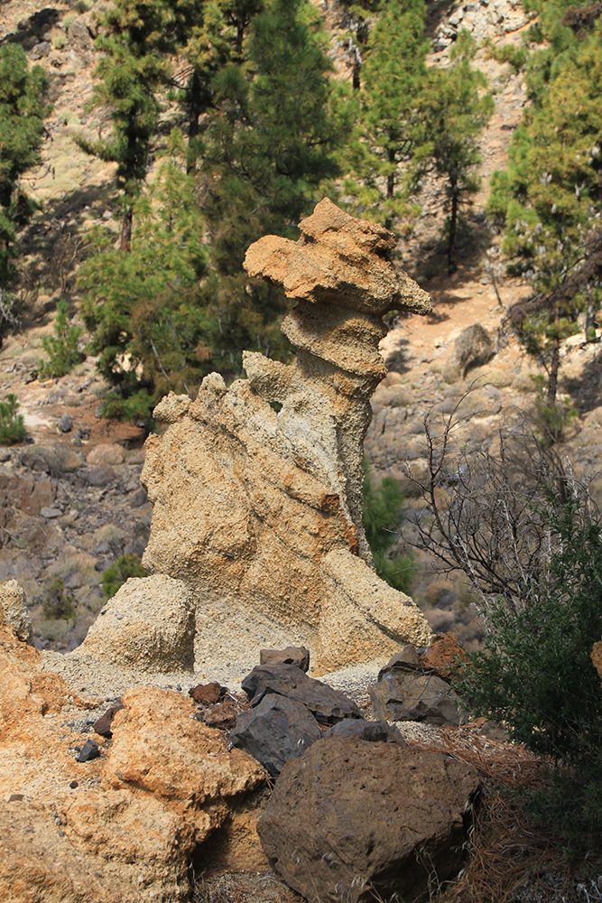 И самое интересное — новые побеги могут расти из любого места ствола. Благодаря этой особенности эти деревья, наверное, и способны восстанавливаться после пожаров. Загадкой остается, как канарские сосны растут в таких сухих местах на лавовых почвах.
