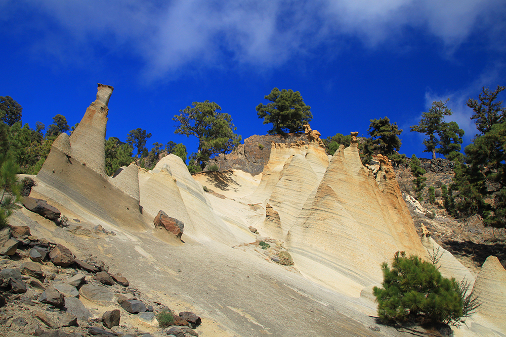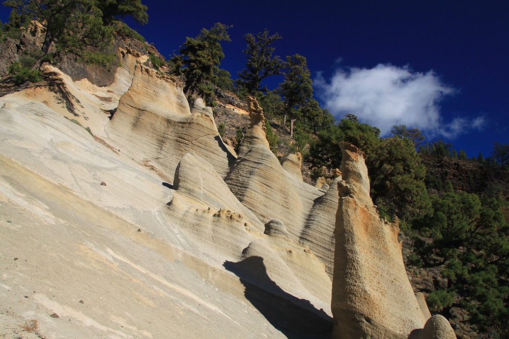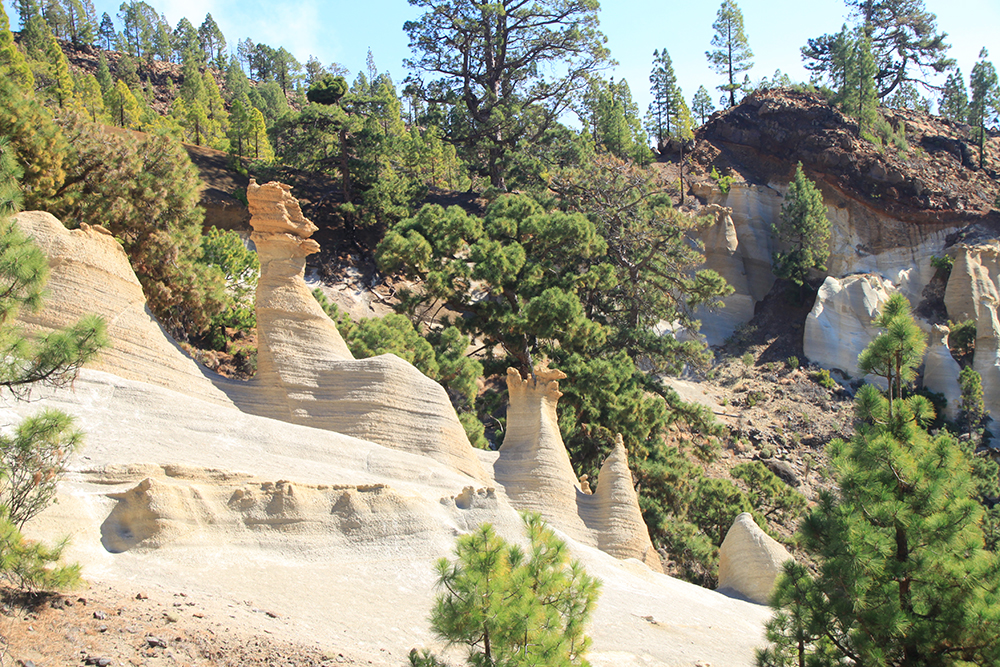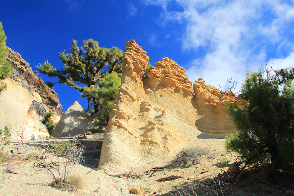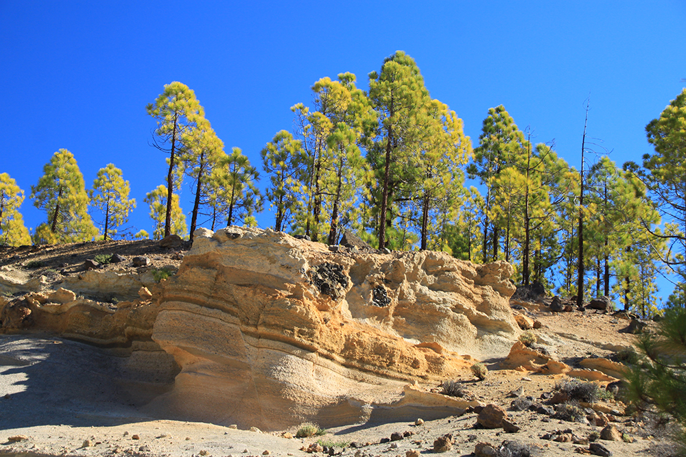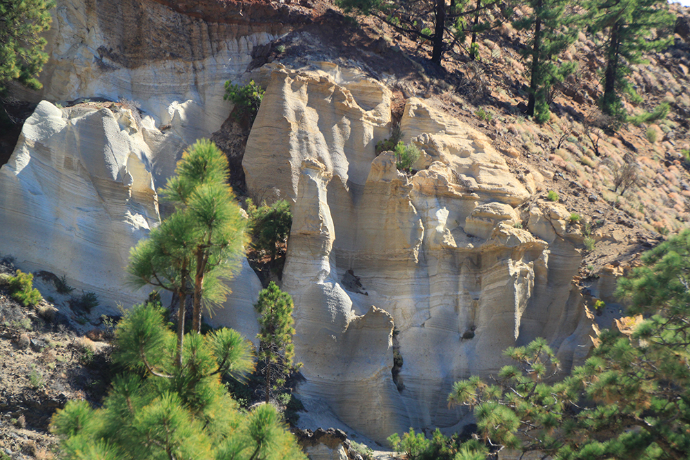 И самое интересное — новые побеги могут расти из любого места ствола. Благодаря этой особенности эти деревья, наверное, и способны восстанавливаться после пожаров. Загадкой остается, как канарские сосны растут в таких сухих местах на лавовых почвах.